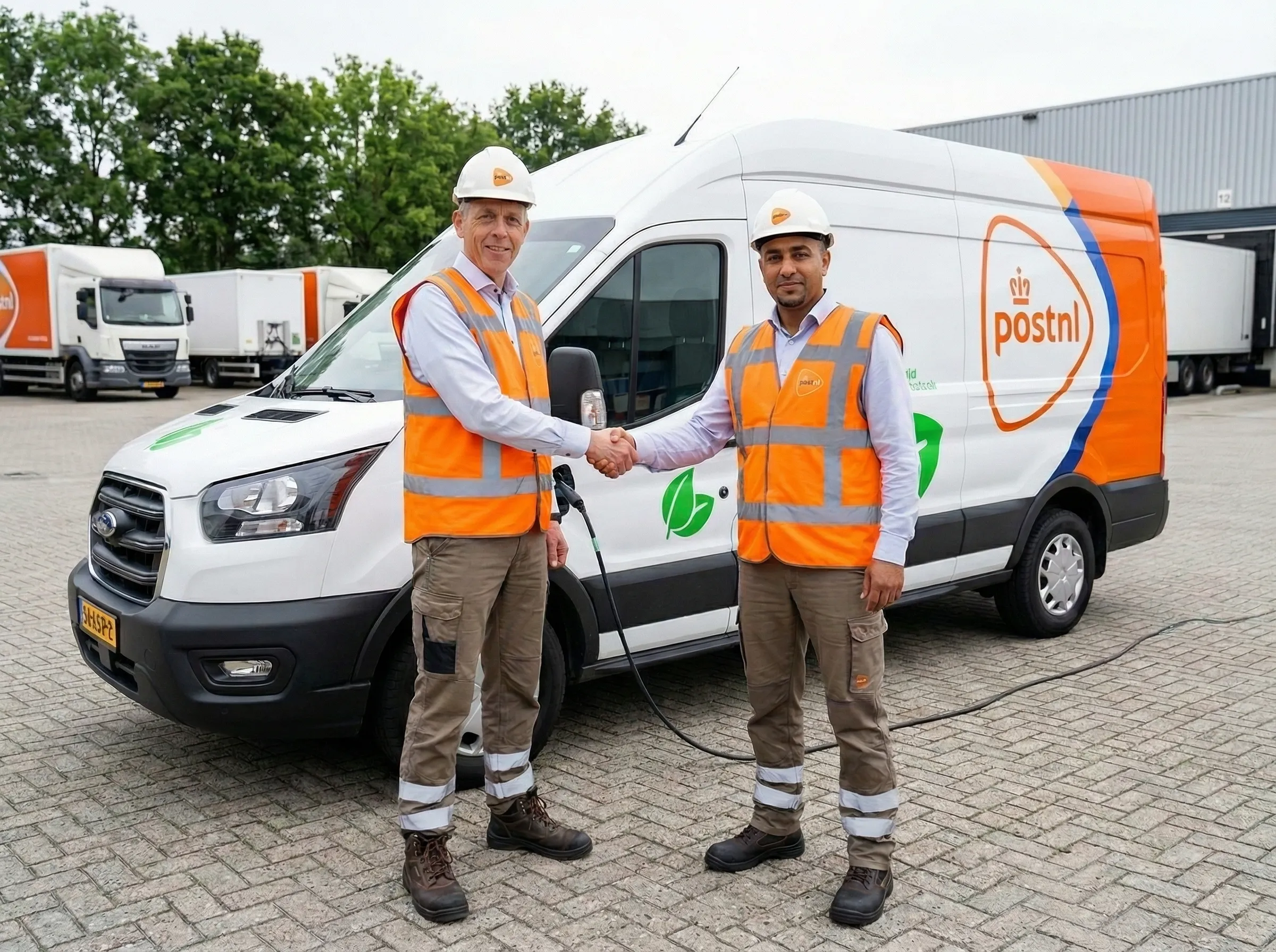 Een laadplein in Veghel op bedrijventerrein De Dubbelen waar meerdere laadpunten slim worden aangestuurd binnen de grenzen van de bestaande aansluiting.