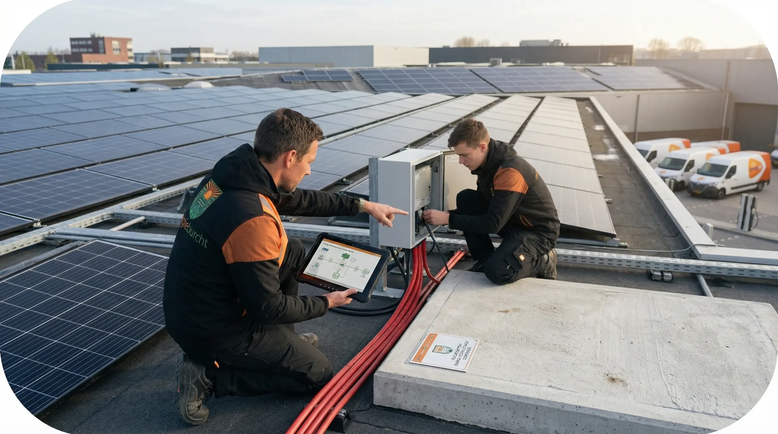 De technische basis voor een slim lokaal energiesysteem met opwek, opslag en sturing.