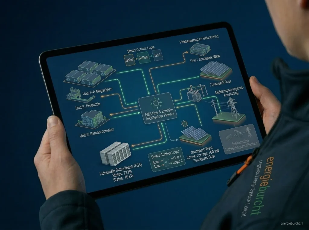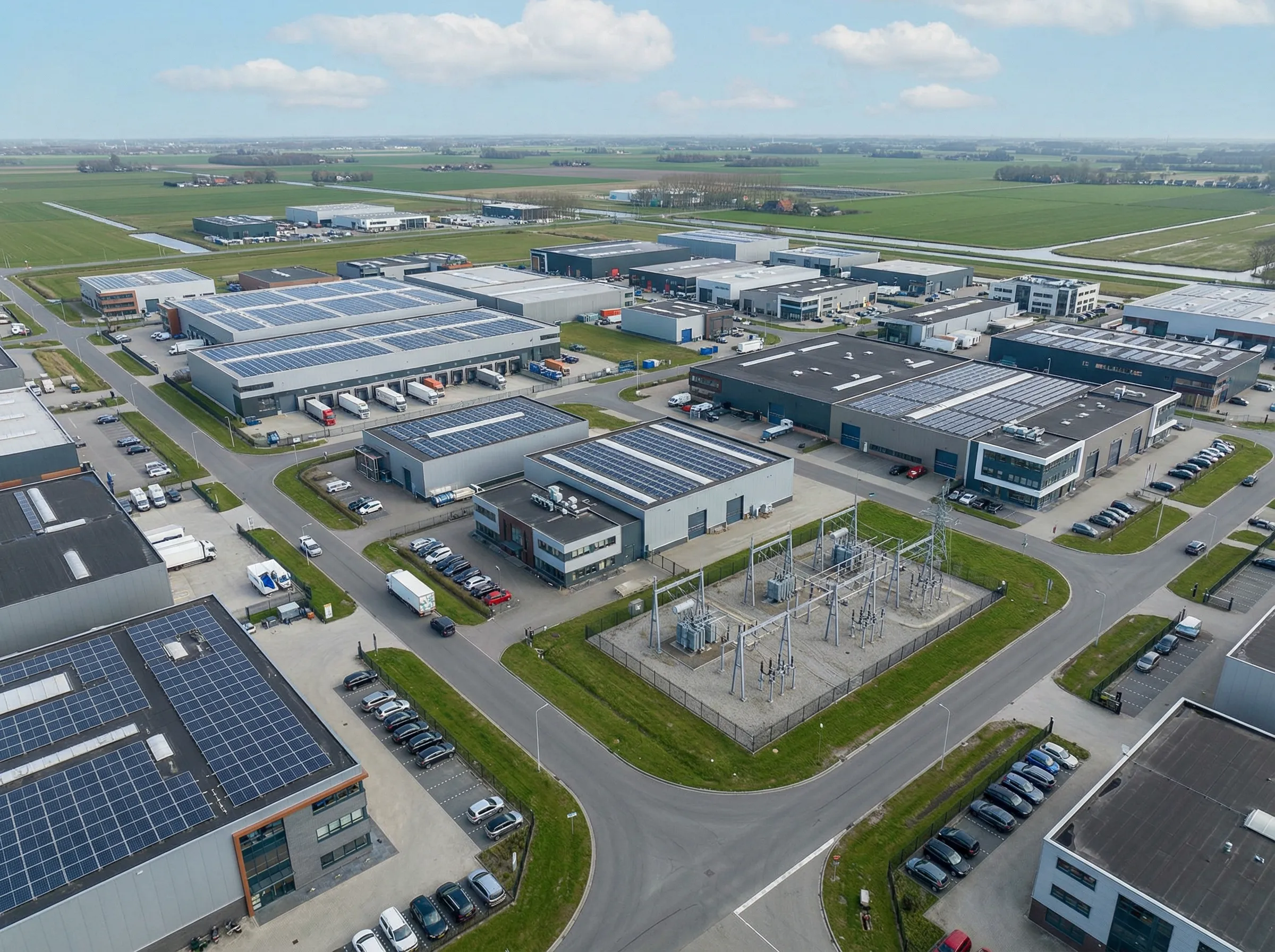 Op bedrijventerreinen en in industrie zitten de knelpunten vaak niet in één installatie, maar in de samenloop van meerdere verbruikers en infrastructuurlagen. Productie, proceskoeling, laadinfra, compressoren, HVAC, opwek en verdeelstructuren kunnen samen voor druk zorgen op aansluiting, transformator en interne distributie.