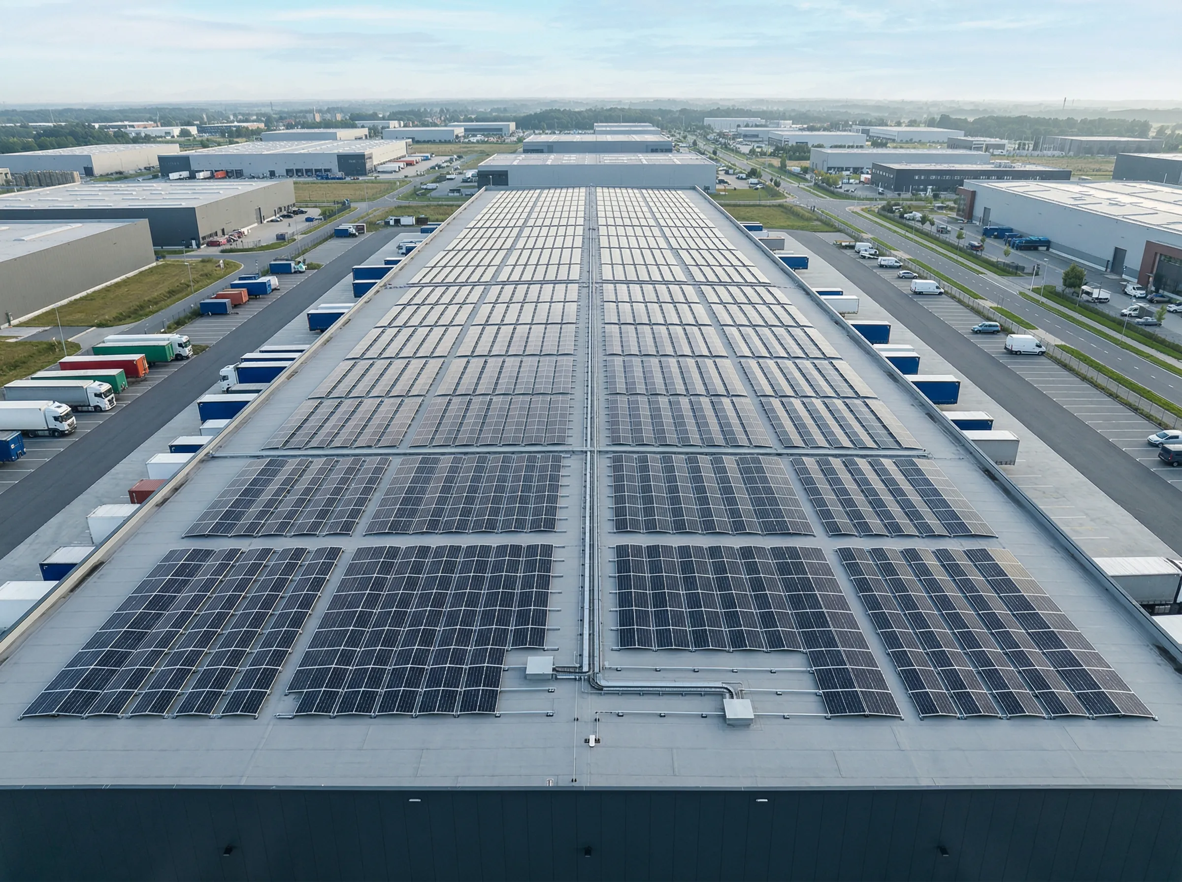 Voeg lokaal vermogen toe op grote logistieke daken waar standaard systemen niet vanzelfsprekend zijn.
