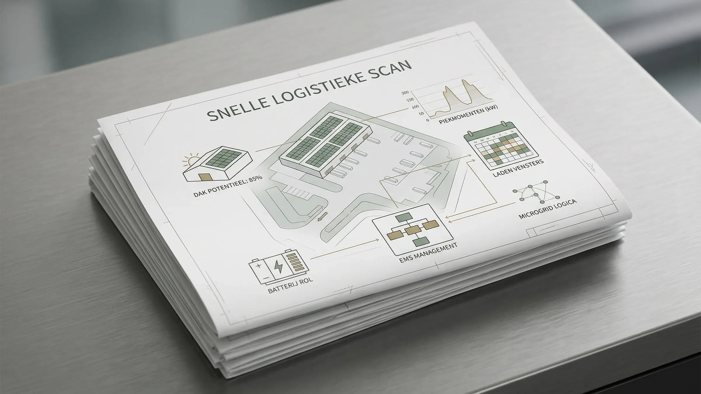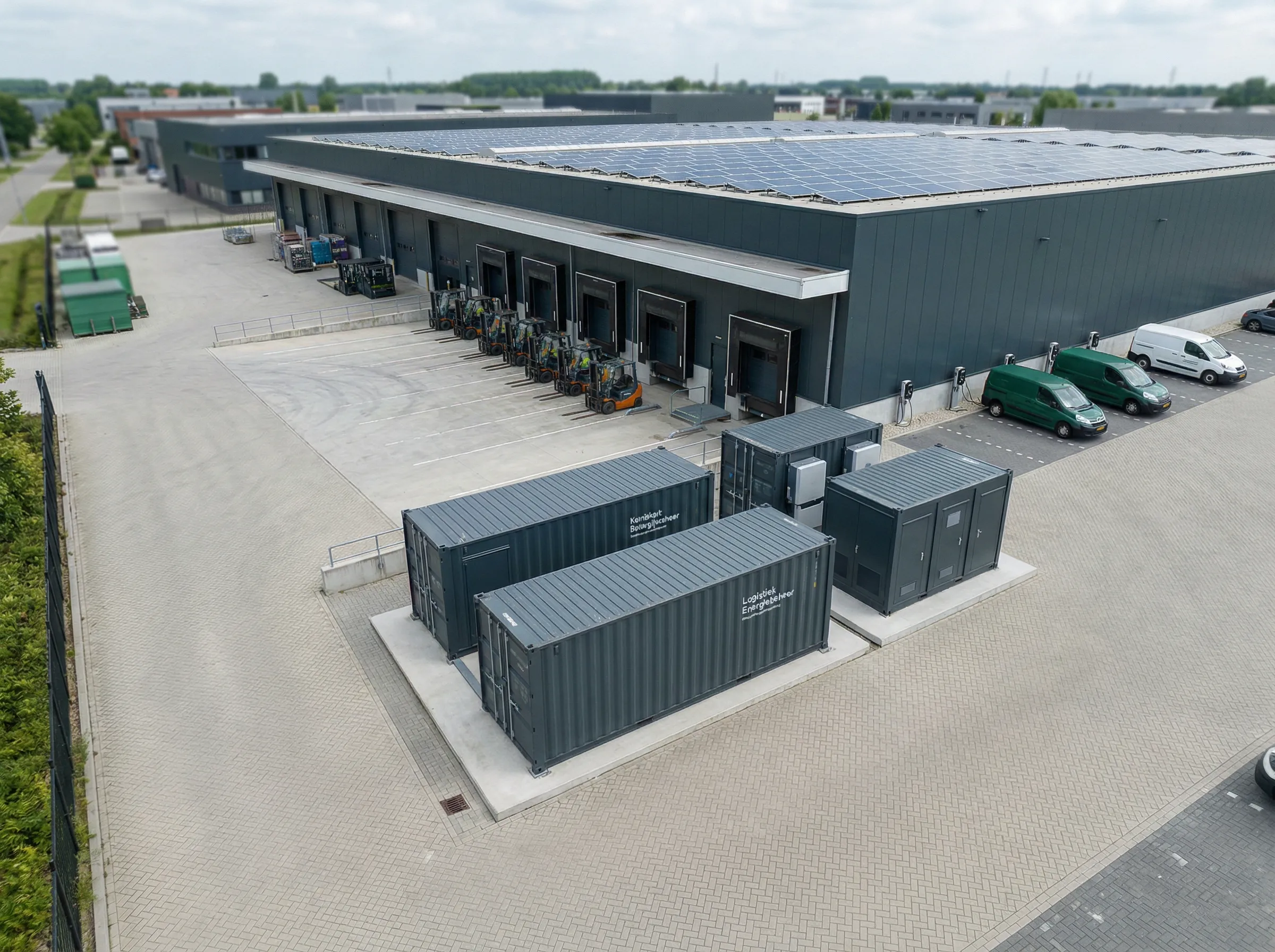 Logistieke locaties combineren vaak grote vermogensvraag met weinig operationele speelruimte. Voertuigen moeten op tijd weg, koelprocessen mogen niet stilvallen en verdere elektrificatie mag de operatie niet blokkeren. Door opwek, opslag, laadinfra, EMS en infrastructuur als één systeem te ontwerpen, ontstaat meer grip op vermogen en meer ruimte om door te groeien.